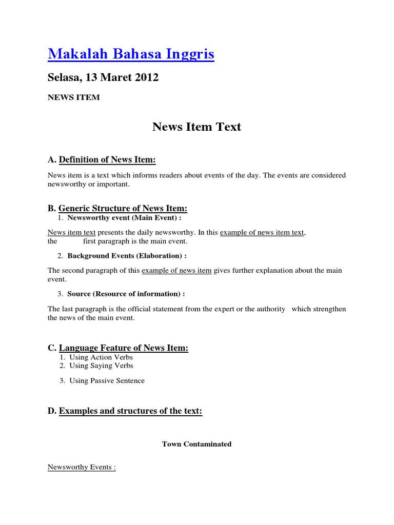 Materi News Item Jika anda termasuk orang yang gemar membaca koran, anda pasti mengetahuinya.